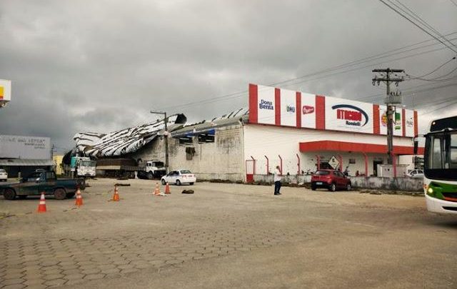 5 – Em Eunápolis, uma manta que cobria o teto do supermercado Atacadão Rondelli, na BR 367, foi arrancada pela ventania e causou danos à rede elétrica, mas não houve vítimas;