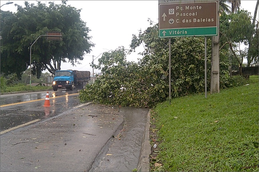 2 – Em muitas localidades houve queda de árvores, inclusive nas BRs 101 e 367;