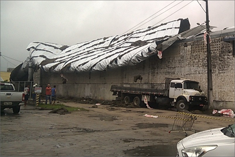 5 – Em Eunápolis, uma manta que cobria o teto do supermercado Atacadão Rondelli, na BR 367, foi arrancada pela ventania e causou danos à rede elétrica, mas não houve vítimas;