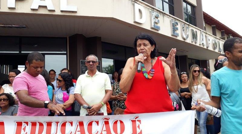 Muito aplaudida, a presidente da APLB, Jovita Lima, subiu à tribuna para protestar diante dos vereadores e público em geral contra o Decreto do prefeito de Eunápolis aumentando a carga horária dos professores da rede municipal de 13 para 16 horas. O ato feito durante o recesso dos professores, levou a categoria a começar o ano letivo em greve.