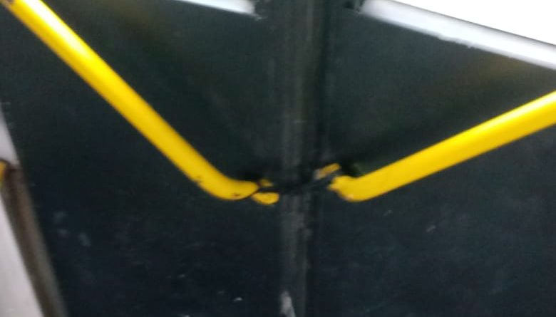 – pneus carecas, motor com pedaço de plástico, portas que não fecham amarradas com cordas, extintor quebrado…