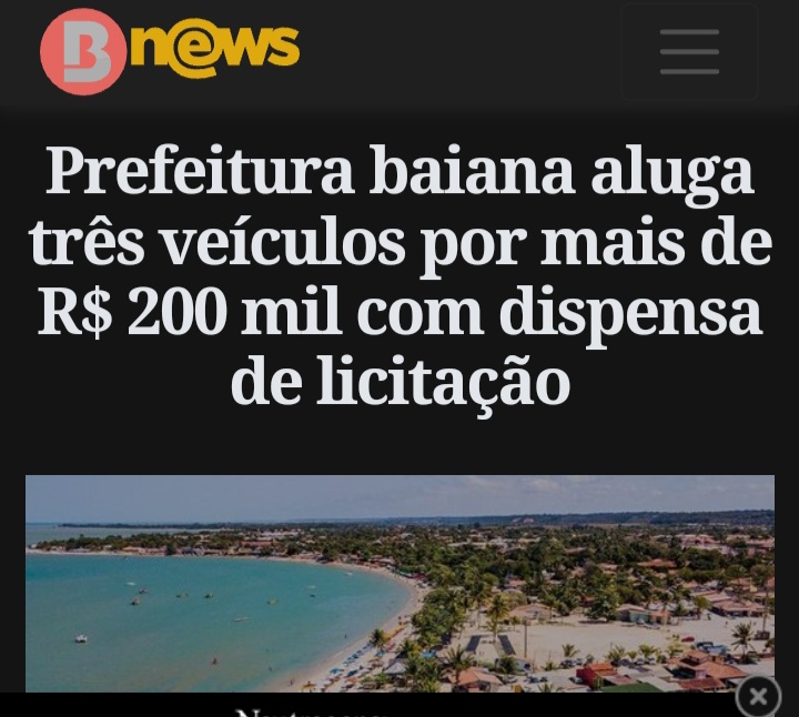 3 – Já o BNews publicou que a Prefeitura de Cabrália celebrou um contrato emergencial, sem licitação, para locação de veículos, com uma pequena empresa de Itabela, cidade da mesma região, a preços que seriam fora da realidade do município;