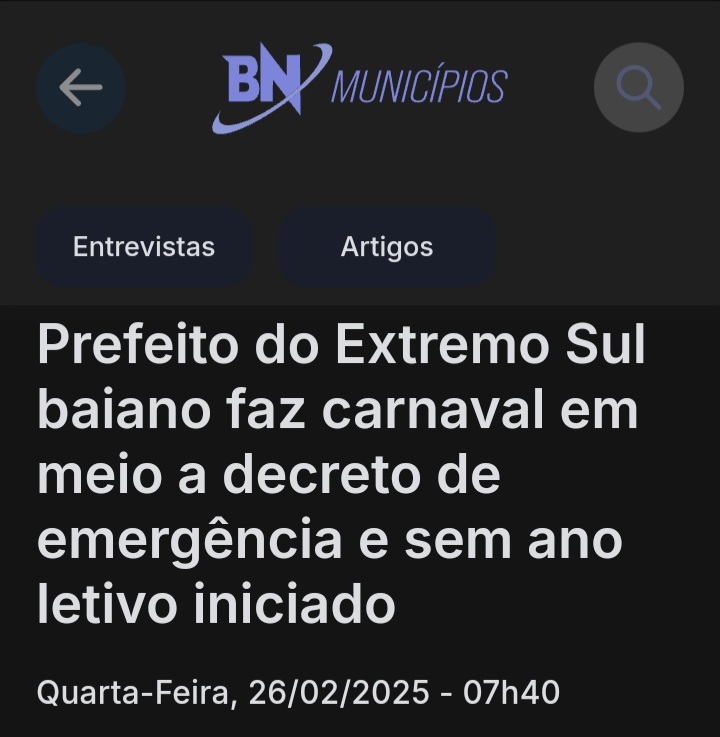 1 – O Bahia Notícias replicou matéria do Radar News, site regional, revelando que Cabrália realizou um pré-carnaval pagando cachês altos para um município que está sob decreto de emergência administrativa desde o início de janeiro;