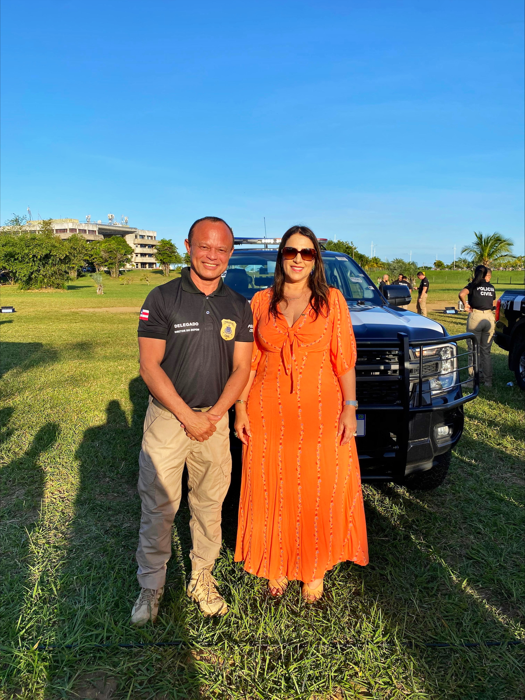 Nesta segunda-feira, 11 de agosto, a deputada estadual Cláudia Oliveira (PSD) participou, em Salvador, da solenidade de entrega de duas novas viaturas para a Polícia Civil, entregues pelo governador Jerônimo Rodrigues e pelo secretário de Segurança Pública da Bahia, Marcelo Werner, destinadas à Delegacia Especial de Atendimento à Mulher (Deam) de Porto Seguro e à Diretoria Regional de Polícia do Interior (DIRPIN) de Eunápolis.