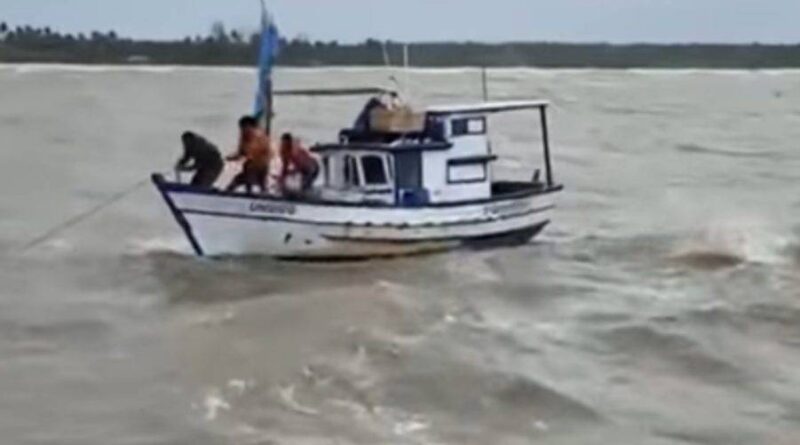 O barco teve um problema mecânico a 15 km da costa e os tripulantes não conseguiram resolver a bordo, nem pedir ajuda. Eles estavam no barco ‘Ungido’, de 7 metros de comprimento, que sofreu a pane mecânica próximo a Mangue Alto, na região de Belmonte, a cerca de 12 km da costa. A Marinha localizou o barco no mar de Canavieiras, cidade próxima. A embarcação foi rebocada até a praia.