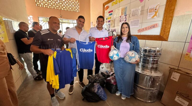 1 – A primeira atividade aconteceu no Colégio Estadual Jésus Moura, onde foram entregues novos instrumentos musicais e uniformes para a fanfarra da escola, além de material esportivo adquirido por meio de emenda parlamentar do mandato da deputada;