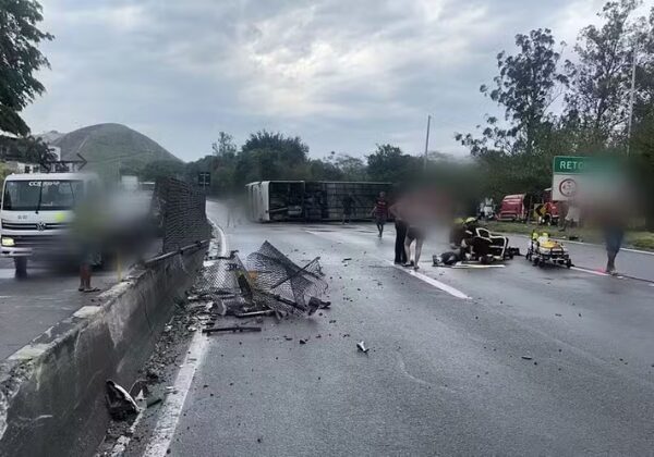 Segundo informações da Polícia Rodoviária Federal (PRF), 16 pessoas ficaram feridas, sendo três em estado grave. O acidente ocorreu por volta das 15h51 e mobilizou equipes do Corpo de Bombeiros, da PRF e da concessionária Rio–SP, que administra o trecho.