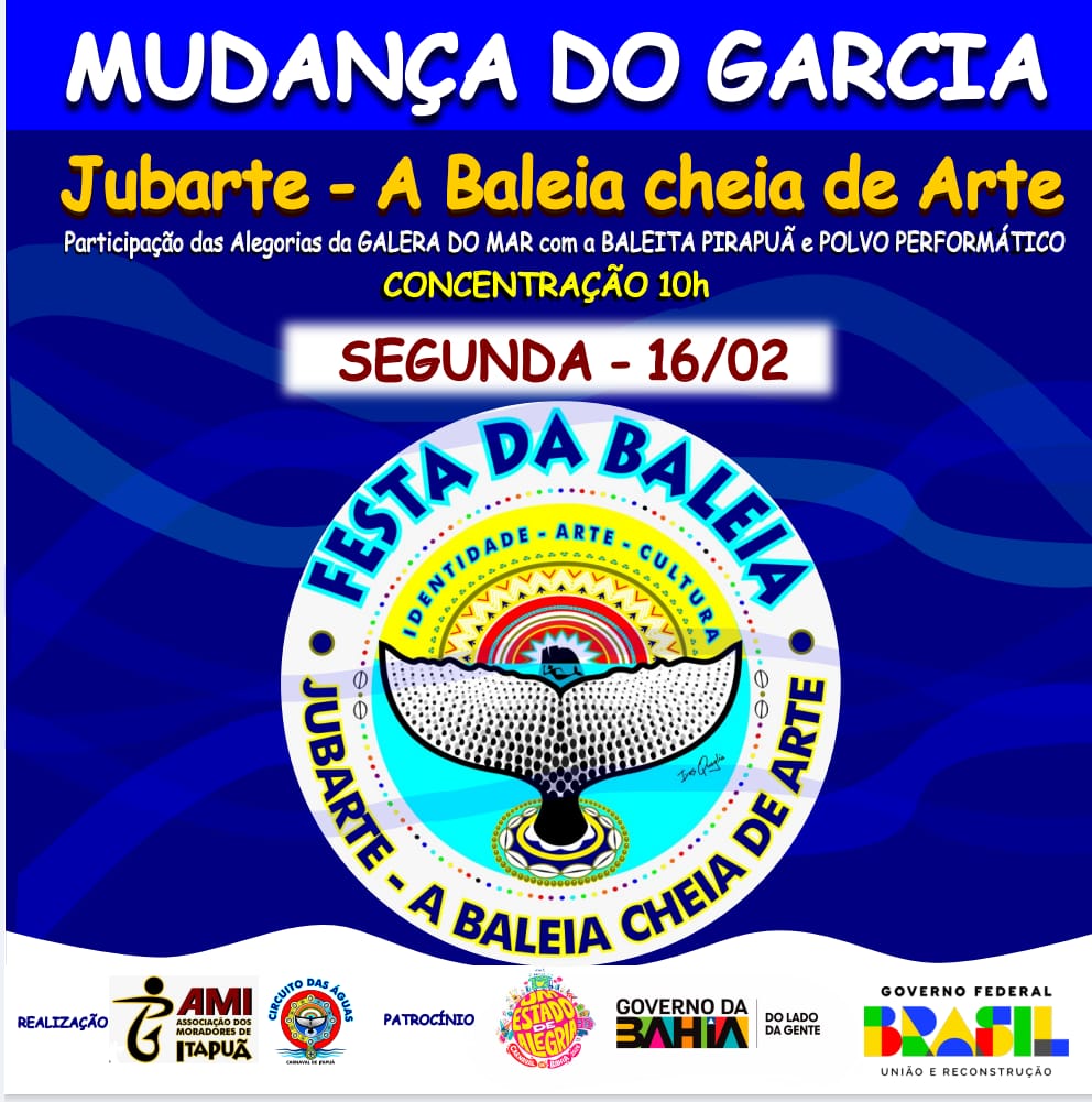 O tradicional bloco cultural Mudança do Garcia desfila nesta segunda-feira de Carnaval (16), no Carnaval de Salvador. O desfile tem início no final de linha do bairro do Garcia e segue até o Campo Grande (Circuito Osmar).