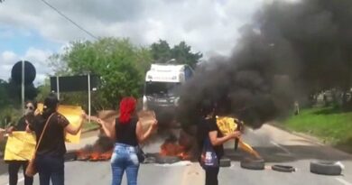 Um grupo de professores da rede municipal de Eunápolis interditou o trânsito na BR 101, no final da manhã